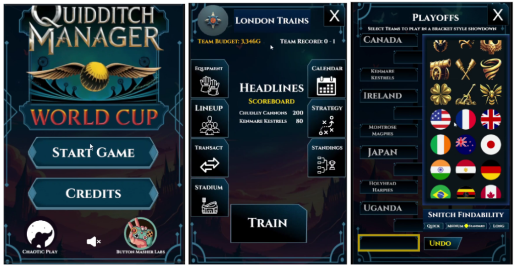 In this process, I saw that Adrian had called it “Quidditch Manager” on the title screen instead of “Quidditch Simulator”. A normal person would go “‘hey, could you change the name to be ‘Simulator’?”